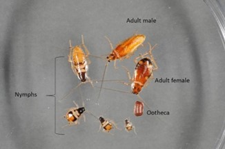 The ootheca (egg cases) of the females can carry around 10 to 18 eggs that will turn into nymphs between 40 to 110 days. The nymphal stage can last up to 120 days. At this point, the nymph has already developed its distinct two light-coloured bands. These bands turn dark when the cockroach reaches adulthood. An adult brown banded cockroach has a lifespan of 90 to 180 days.