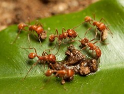 During mid to late summer, the queen and fertile male fire ants mate. Once fertilised, the queen will look for an appropriate site to lay her eggs. She may lay up to 125 eggs during the late spring season. The eggs hatch into larvae after 8 to 10 days and undergo the pupal stage which lasts from 9 to 16 days. As soon as worker ants emerge, the queen can increase her egg-laying frequency to a maximum of 1500 eggs per day.