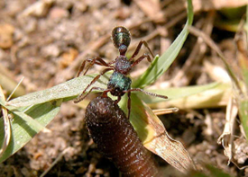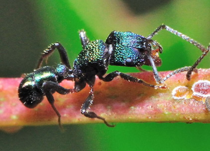 Green Ants have a distinct, iridescent sheen to their appearance. They tend to forage during sunny conditions, and their queens have a similar appearance to the workers and also participate in foraging activities.